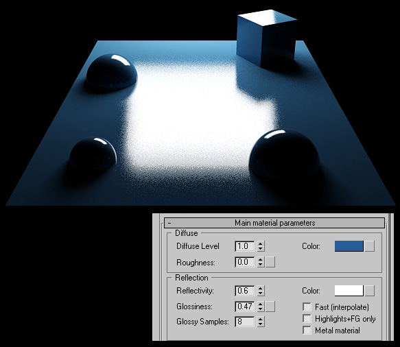 Along those lines, I've seen a few posts on various forums about noise in the reflections of the A&D material. That noise is primarily controlled by the reflection sample settings, not the FG settings, etc.. here's some examples to illustrate the point.
